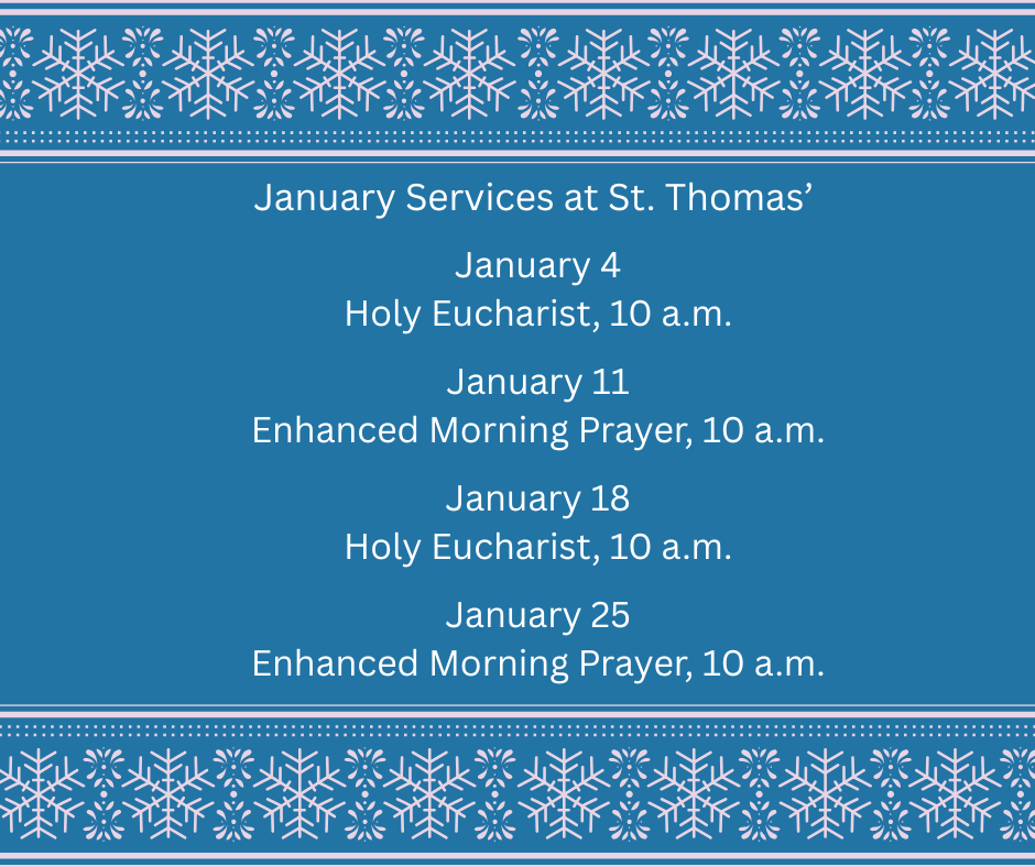 Sunday, January 4 – Service of Holy Eucharist at 10 a.m., Coffee Hour to follow