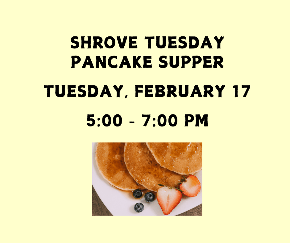 Tuesday, February 17 – Shrove Tuesday Pancake Supper, 5-7 p.m.