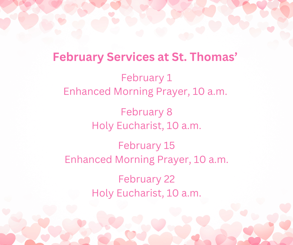 Sunday, February 15 – Service of Enhanced Morning Prayer at 10 a.m., Coffee Hour to follow